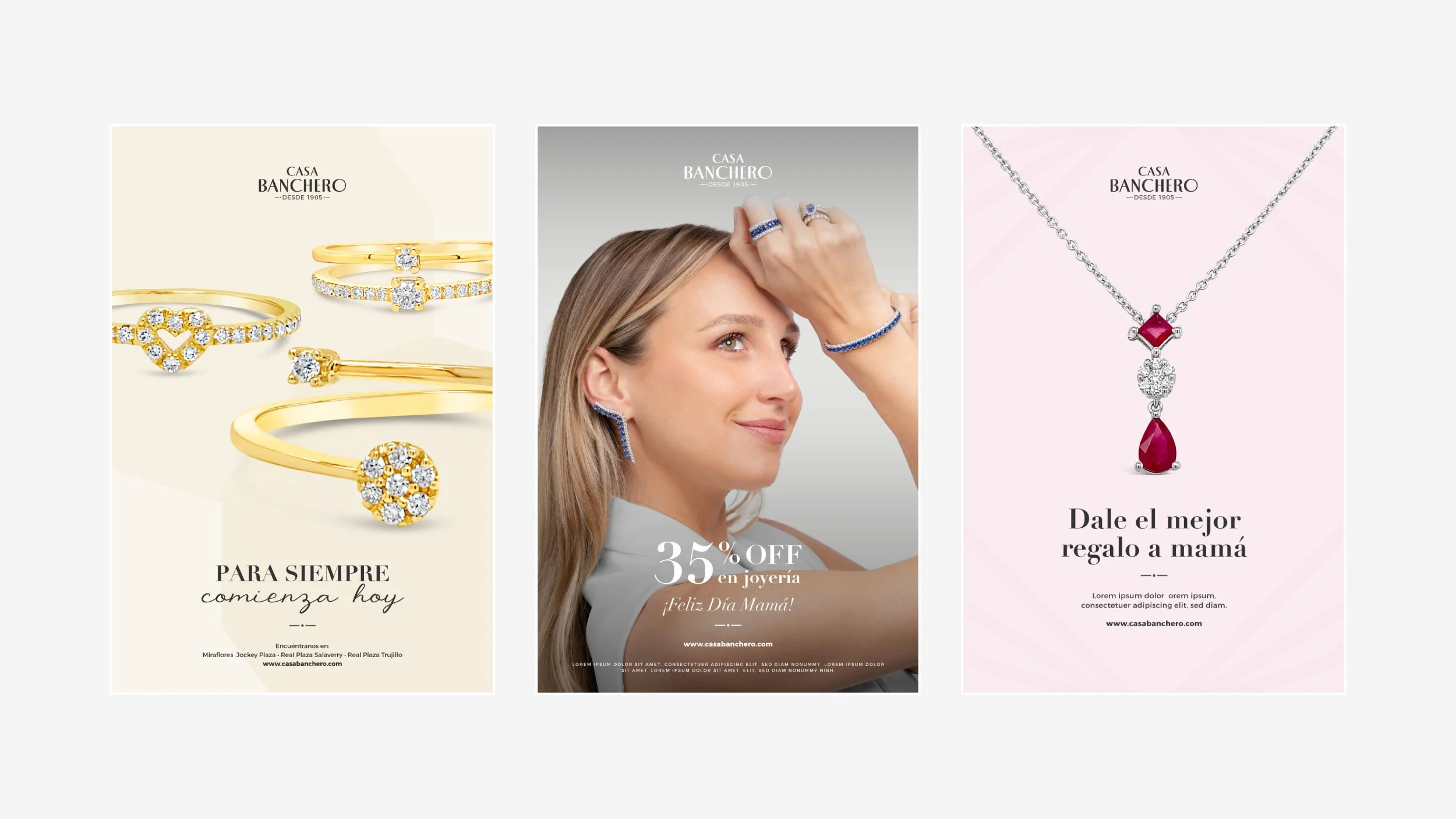 Diseñamos la identidad de Casa Banchero, una prestigiosa joyería de gran reconocimiento en Lima, Perú. El desafío de este proyecto fue modernizar su imagen sin perder su tradición, elegancia y lujo característicos. Casa Banchero va más allá de la joyería: es emoción, es expresión… es lujo en su máxima expresión.